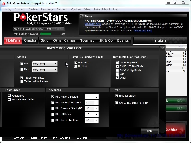 Como podem ver pelos gráficos e limites andei muito dum lado para o outro de limite em limite de tipo de jogo em tipo de jogo. Não joguei muitos torneios, se dois ou três já foi muito… os torneios ficaram em 2009 no inicio. Ainda tive o primeiro lugar nos de 0.25$ eheh. Vamos recordar? -> http://img57.imageshack.us/f/screenshot266.jpg/